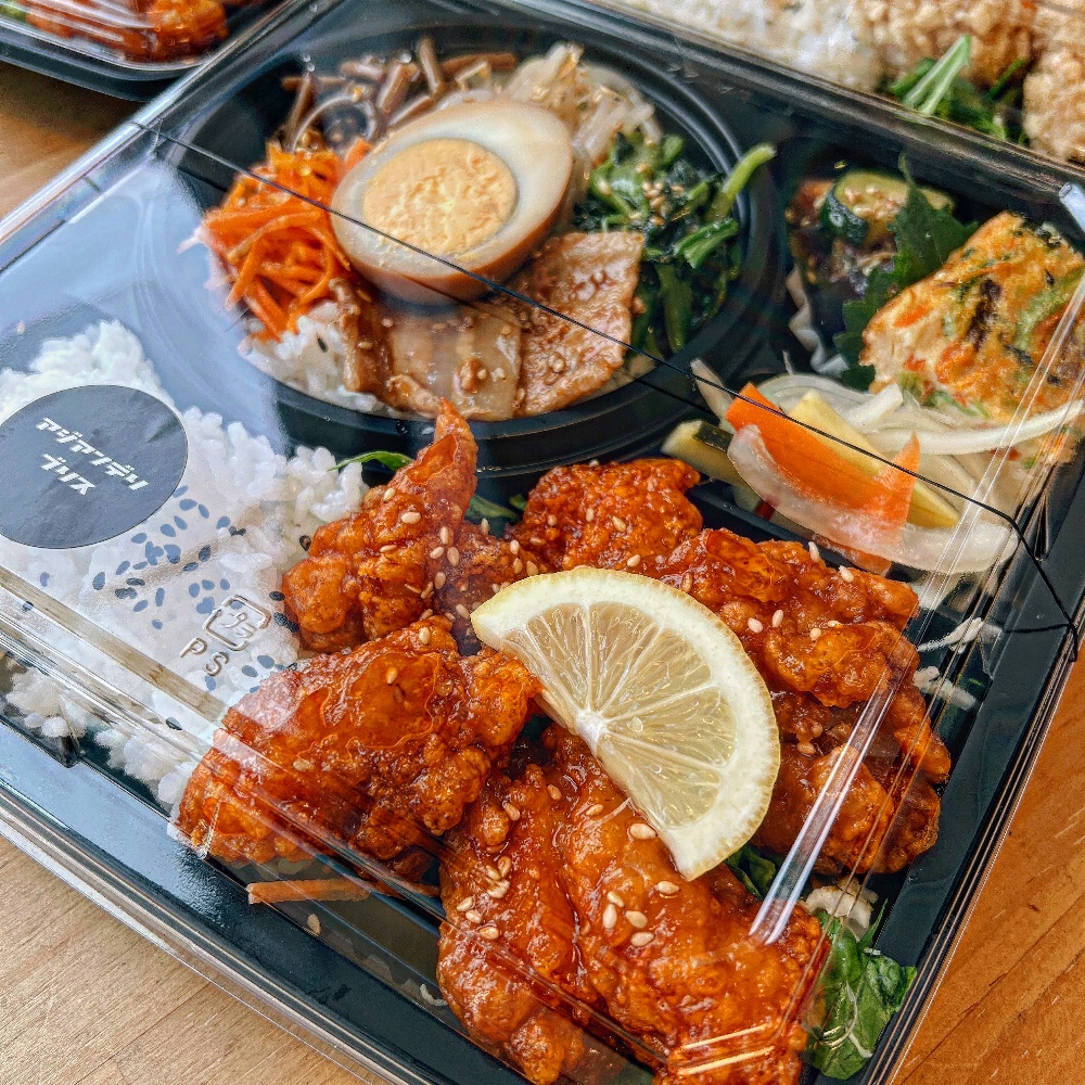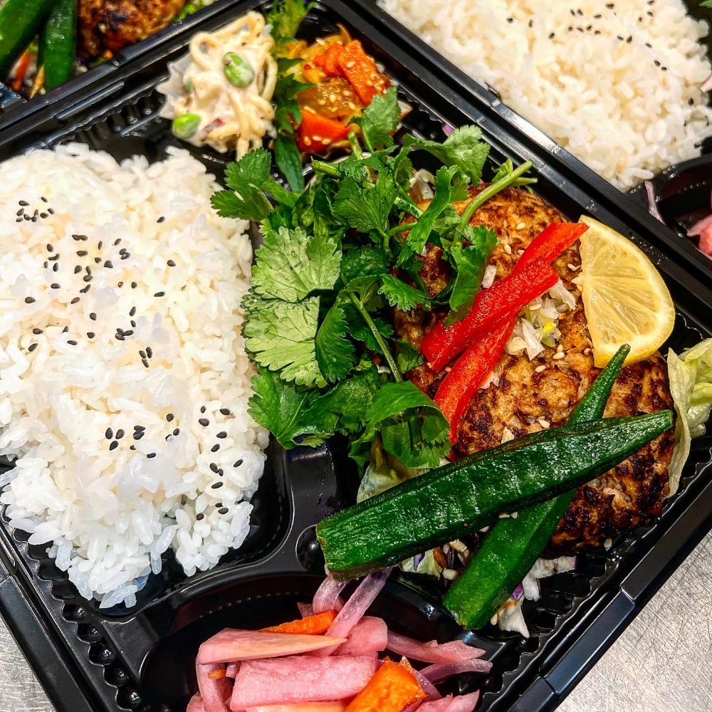 お米はお弁当と同じ“小山産とちぎの星”を使用し、具材も当店人気のおかずを贅沢にのせた食べ応えのあるアジアンおにぎりです。
