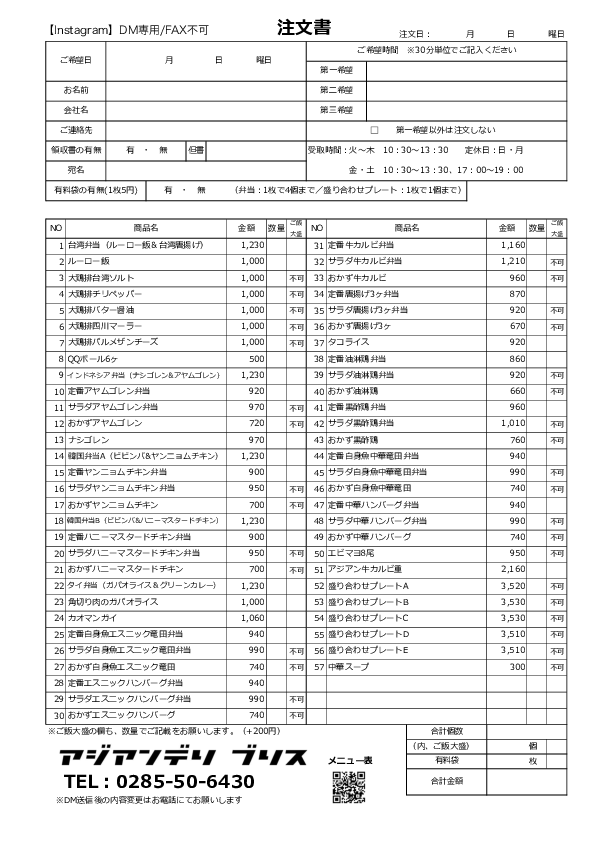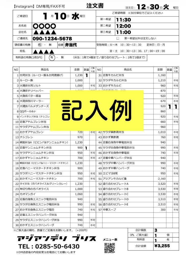 そのため、今後DMでご予約いただく際は、下記の注文書のご使用をお願いいたします。
