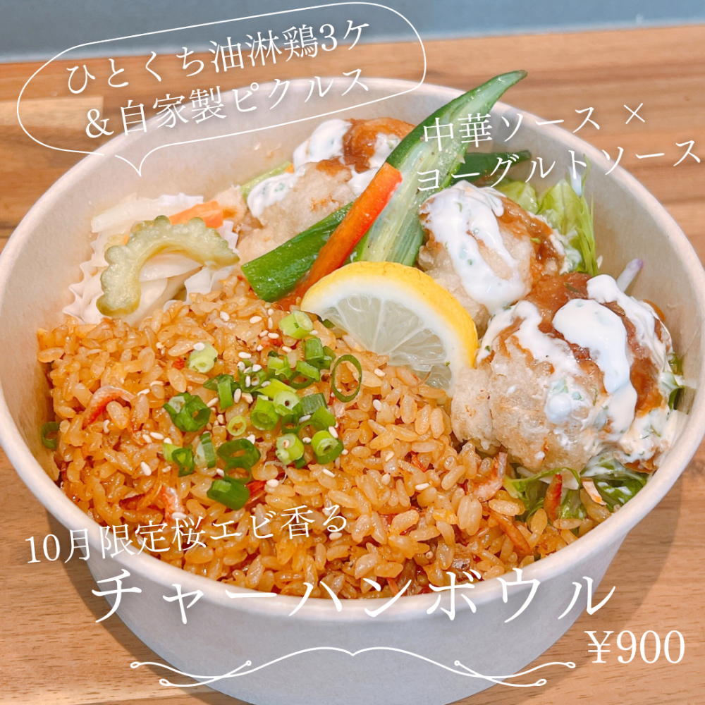 エビチリ、チャーハン、バジルチキン、自家製ピクルス、油淋鶏、エビの生春巻き、台湾QQボール、韓国チーズボール